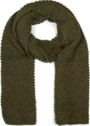 Damen langer Strick Schal mit Wellen Strickmuster, warmer Winter Strickschal Einfarbig 01018168, Farbe:Oliv
