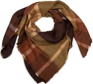 quadratischer XXL Schal kariert, Decken Schal mit Karo Muster und Fransen, warm und weich, Unisex 01018139, Farbe:Senf-Dunkelbraun