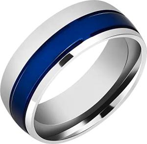 Eheringe Partnerringe Verlobungsringe Edelstahl mit Simili+ Gravur blau silberfarbig (Herrenring, 70)