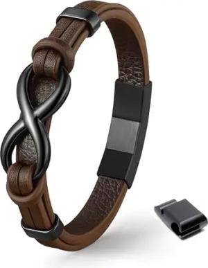 UNIQAL | Herren Lederarmband – Infinity Symbol aus Edelstahl & Echtleder – Armband für Männer und Frauen, Braun, Stilvolles Geschenk für Männer, Freund, Vater oder Ehemann – Inklusive Geschenkbox