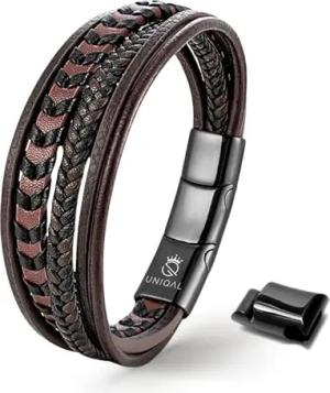 UNIQAL Lederarmband Herren „ARMARA“ | Geflochtenes Männerarmband aus Echtleder & Edelstahl | Magnetverschluss | Schwarz, Braun, Blau | Unisex | Geschenkidee | Etui | Geburtstag (Braun, 23 cm)
