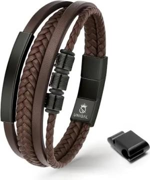 UNIQAL | Lederarmband Herren "BLACK SHAPE" Mens Bracelet | Edelstahl, Echtleder | Etui Box Gratis (Braun, 23.00)