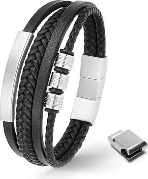 UNIQAL Lederarmband Herren „ARMARA“ | Geflochtenes Männerarmband aus Echtleder & Edelstahl | Magnetverschluss | Schwarz, Braun, Blau | Unisex | Geschenkidee | Etui | Geburtstag (Schwarz, 19 cm)