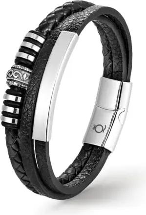 UNIQAL | Lederarmband Herren "BLACK SHAPE" Mens Bracelet | Edelstahl, Echtleder | Etui Box Gratis (Silver, 19.00)