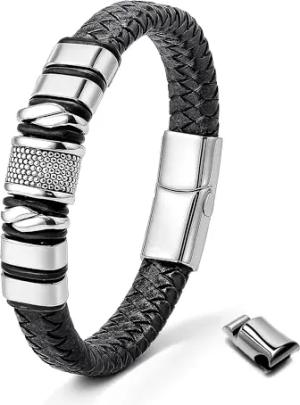UNIQAL | Lederarmband Herren "Premium Style" Mens Bracelet | Gratis Geschenk Box | Echtleder, Edelstahl (Silber, 19.00, Zentimeter)