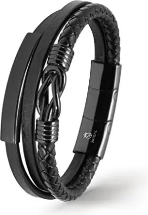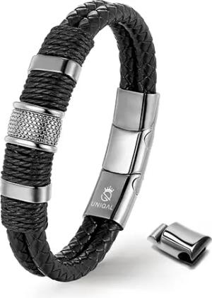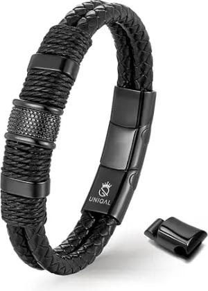 UNIQAL | Lederarmband Herren "Premium Style" Mens Bracelet | Gratis Geschenk Box | Echtleder, Edelstahl (Schwarz, 21.00, Zentimeter)