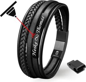 UNIQAL | Personalisiertes Lederarmband Herren mit Gravur "SIGNATURE" Mens Bracelet, Geschenk für Männer, Vater, Freund, Papatag, Unisex | Edelstahl, Echtleder | Etui Box (Schwarz, 21.00, Zentimeter)