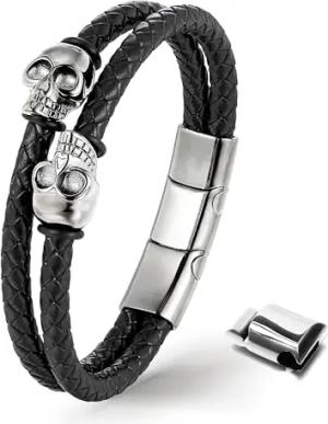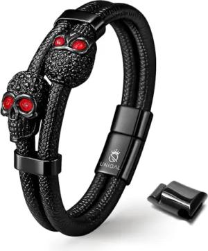 UNIQAL | Totenkopf Armband Herren aus Leder | Skull Bracelet Biker Rock Schmuck | Edelstahl Magnetverschluss | Handgemacht in Deutschland | Geschenkidee Geburtstag (TOXIC, 19)