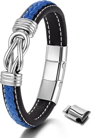 UNIQAL | Unendlichkeit Leder Armband "ETERNAL" Infinity Bracelet | Geschenk box | Magnetverschluss (Blau, 21.00)