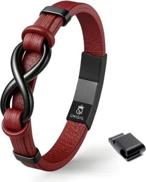 UNIQAL | Unendlichkeit Leder Armband "INFINITY" Herren | Edelstahl/Echtleder Schwarz und Braun + Geschenk Etui box (Rot, 23)