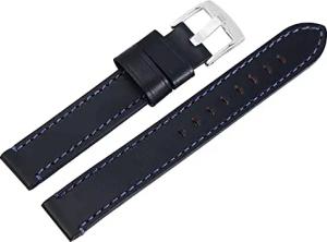 Uhrenarmband Ersatz aus Leder mit Ziernaht Dornschließe Breite 18-24 mm (Stegbreite: 22 mm, dunkelblau blau)