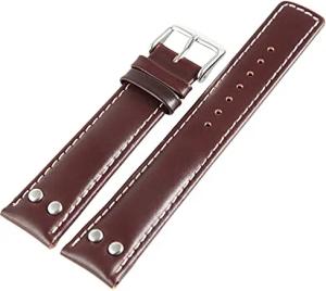 Uhrenarmband Ersatz aus Leder Ziernaht mit Dornschließe Breite 18-24 mm (Stegbreite: 22 mm, dunkelbraun braun)