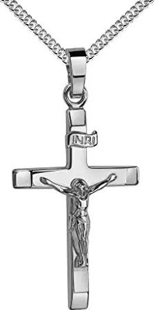 Silber Kreuz-Anhänger Kruzifix Jesus Christus mit INRI-Gravur Kettenanhänger 925 Silber. Mit Kette 925 Silber - Kettenlänge 36 cm.