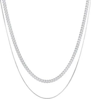 Herren Halsketten Set aus 925 Sterling Silber, Massive Panzerkette mit 4 mm Glieder poliert, Feine Venezianer Kette 1 mm für Manner, Robuste Herrenketten für Anhänger, Länge 50 + 55 cm (Silber)