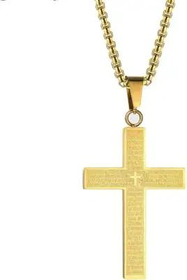 Kreuz Kette mit Anhänger für Herren und Damen - Streetwear Kreuz Halskette mit Cross Anhänger aus Edelstahl - Wasserfeste Kreuzkette - 50-55cm Länge verstellbar (Gold)