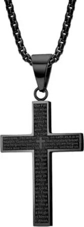 Kette Herren Halskette mit Anhänger Edelstahl Schwarz Schmuck Schachtel Geschenk für Männer Cross Necklace Men Jewelry Band Jesus Kreuz Kubanische