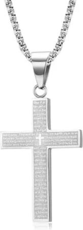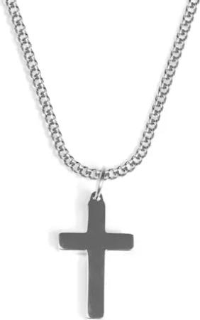 Karma NH10667869 Halskette mit Kreuz Silber Herren Edelstahl 48 cm Kette Herrenschmuck Edelstahlkette Männer Herrenhalskette Geschenk für Ihn Kreuzkette (Silber)