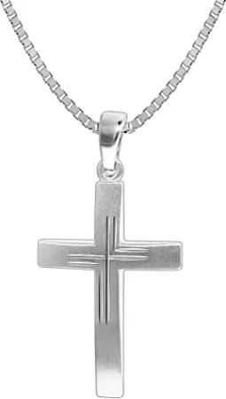 Anhänger-Kreuz formschön für Damen, Herren und Kinder mit abgeflachten Kanten als Kettenanhänger 925 Silber mit Schmuck-Etui