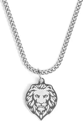 Löwe Kette mit Anhänger für Herren und Damen - Streetwear Cuban Halskette mit Sternzeiche Löwe Anhänger aus Edelstahl und 18K Gold - Wasserfeste Kette - 50-55cm Länge verstellbar (Silver)