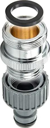 Mischdüse-Armaturenadapter für Gartenschlauch M28x1 x 3/4 Zoll, nach aktueller Trinkwasserverordnung, Messing verchromt