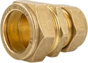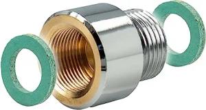 Verschraubung mit beidseitig drehbaren Überwurfmuttern, 1 x 1 Zoll, flachdichtend, Innengewinde Rp, DVGW zugelassen, Messing CW617N
