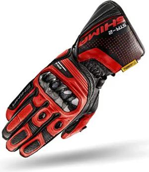 STR-2 Motorradhandschuhe Herren - Touchscreen, Sommer, Sport Leder Handschuhe mit Carbon Knöchelprotektor, Handflächen- und Fingerschieber, Verstärkte Handfläche (Schwarz/Rot, XXL)