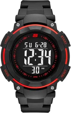 Herrenuhr Ruhland, Digitales Uhrwerk, 45mm Schwarz, Rot Polykarbonat Gehäuse mit Polyurethan Armband, SR1022