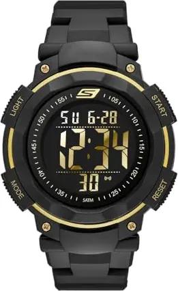 Herrenuhr Ruhland, Digitales Uhrwerk, 45mm Schwarzes, goldenes Polycarbonatgehäuse mit PolyurethanArmband, SR1019