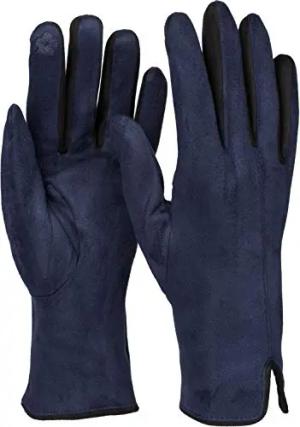 Damen Touchscreen Handschuhe mit Farbkontrast und Fleece Futter | warme Winterhandschuhe | weiche elastische Thermo Fingerhandschuhe, Farbe:Dunkelblau