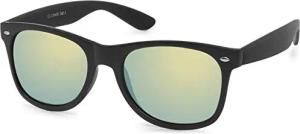 Unisex Nerd Sonnenbrille mit verspiegelten oder getönten Gläsern, klassisches Retro Design 09020039, Farbe:Gestell Schwarz matt/Glas Gelb