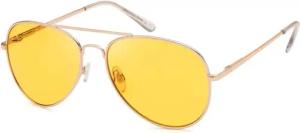 Unisex Pilotenbrille Sonnenbrille Polycarbonat Gläser, Metall Vollrand Gestell mit Federscharnier 09020037, Farbe:Gestell Gold/Glas Gelb