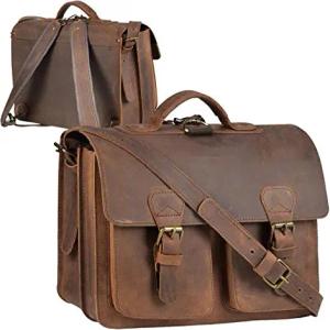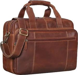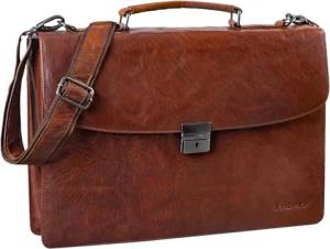 Aktentasche Echt Leder Herren | Business Tasche mit Laptopfach | Bürotasche mit Organizer | Schultertasche für DIN A4 | 101017