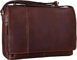 'Elias' Echtleder Umhängetasche 15.6 Zoll - der verbesserte Klassiker - Vintage Lifestyle 2.0, Farbe:cognac - dunkelbraun