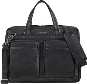 Lysander Arbeitstasche Leder Groß Vintage Aktentasche XL Bürotasche 15,6 Zoll Laptoptasche Office Bag Umhängetasche Aufsteckbar Echtleder Farbe:Obsidian schwarz