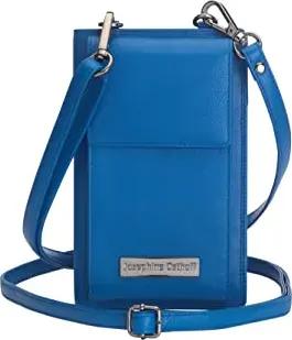 Handy Umhängetasche mit Geldbörse, handgemacht aus 100% Echtleder, Clutch für Damen, RFID Schutz, Crossbody Schultergurt, 12 Kartenfächer, Farbe:Royal