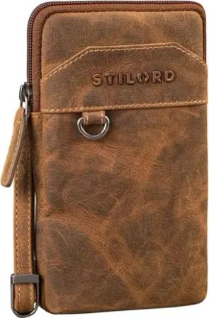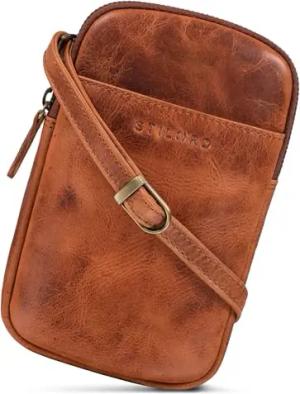 'Loki' Vintage Echtleder Handytasche - Brustbeutel Perfekt für Reisen, Festivals & Unterwegs - Kleine Umhängetasche für Smartphone Farbe:kara - cognac