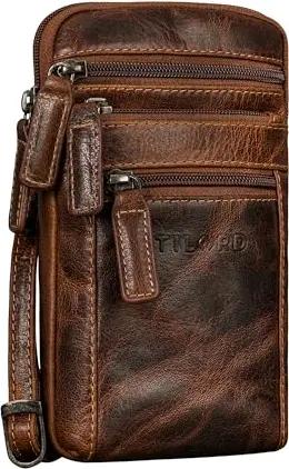 'Tyrell' Brusttasche Herren Leder Schultertasche mit Gürtelschlaufe Handytasche zum Umhängen Brustbeutel Crossbody Bag Vintage Gürteltasche, Farbe:bergamo - braun