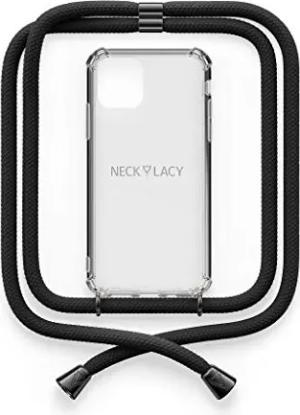 Handykette kompatibel mit iPhone 16 Handyhülle mit Umhängeband, Handykordel mit Schutzhülle, Silikonhülle, Hülle mit Band, Stylische Kette für Smartphones, Schwarz