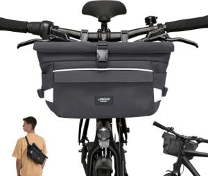 Lenkertasche Fahrrad Grau - Lasse - 2 in 1 Fahrradtasche & Umhängetasche - Bikepacking Tasche für Lenker Vorne mit Reflektion - Wasserabweisend