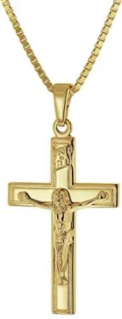 Kruzifix 14 Karat Gold 585 mit goldplattierter Silberkette zeitloser Halsschmuck für Damen und Herren, elegante Geschenkidee, 41416-45 45 cm