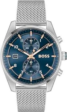 Chronograph Quarz Uhr für Herren mit Blaues Edelstahl-Mesh-Gliederarmband - 1513836