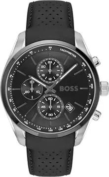 Chronographen-Quarzuhr mit Kalender für Herren Kollektion Grand Prix 44 mit Schwarzes Lederarmband - 1514224