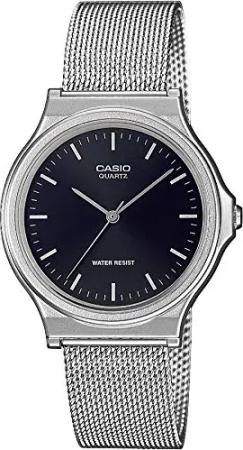 Unisex Quartz Armbanduhr, 40.00mm Gehäusegröße mit schwarz analog Zifferblatt und Silber Armband MQ-24M-1EEF