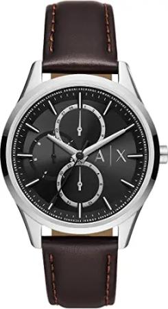 Uhr für Herren, QuarzMultifunktionswerk, 42MM Braunes Edelstahlgehäuse mit Lederarmband, AX1868