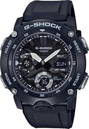 Unisex Quartz Armbanduhr, 49.00mm Gehäusegröße mit schwarz analog/digital Zifferblatt und schwarz Rubber Strap Armband GA-2000S-1AER