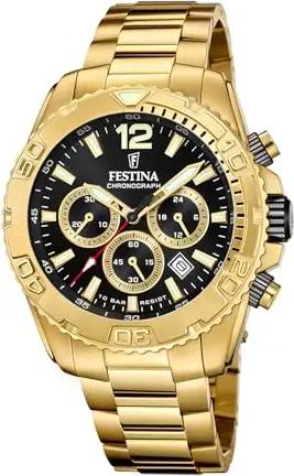 Herren Uhr Analog aus Edelstahl 316L Goldfarben - Quarzwerk - Chronograph - Kalender - Widerstandsfähiges Mineralglas - Wasserdicht bis 10 ATM F20684/4 Timeless Chronograph