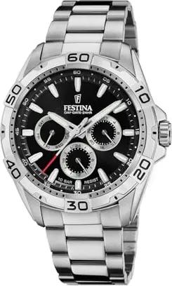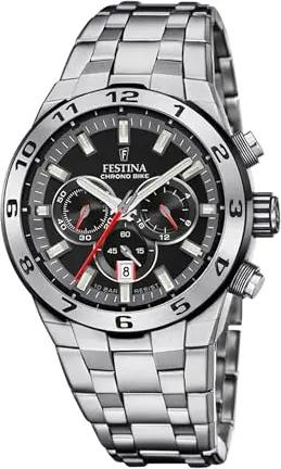 Herren Uhr Analog aus Edelstahl 316L Silber - Quarzwerk - Chronograph - Kalender - Mineralglas mit hoher Widerstandsfähigkeit - Wasserdicht bis 10 ATM F20670/2 Chrono Bike