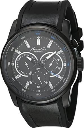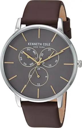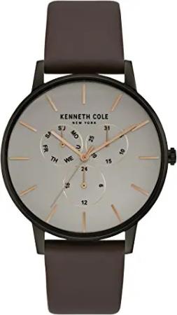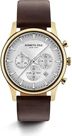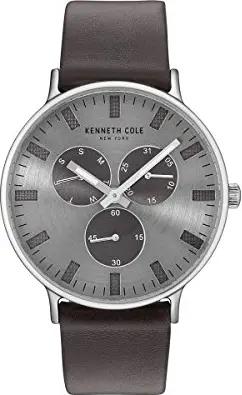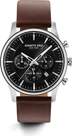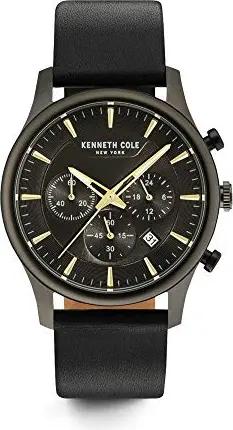 Kenneth Cole Herren Analog Quarz Uhr mit Leder Armband KC15106003