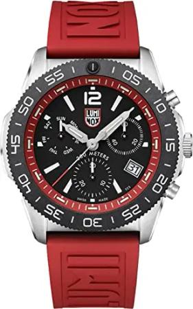 Pacific Diver Taucheruhr aus Edelstahl und Kautschuk Silber-Schwarz-Rot 44mm, Wasserdichtigkeit, 20Bar, XS.3155