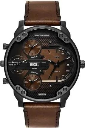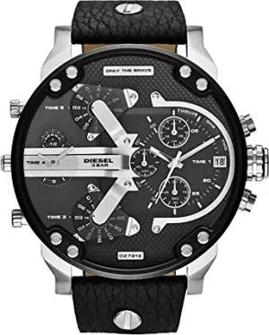 Herrenuhr Mega Chief, Chronographenwerk, 59mm Schwarzes Edelstahlgehäuse mit Lederarmband, DZ4323